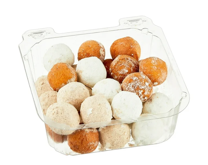 Our Freshness Guaranteed Assorted Donut Holes will sweeten your day. These small, bite-sized donuts come in a 14-ounce package, with about seven servings of delicious donut holes made the old-fashioned way. Pick-up a pack of assorted donut holes and enjoy plain cake, powdered sugar, or powdered cinnamon sugar donuts all in one package! With a variety of flavors, this item is ideal for office parties and family gatherings. These scrumptious donut holes are excellent when paired with a glass of coffee or milk for breakfast, but can be enjoyed anytime of the day. Bring home a pack of our Freshness Guaranteed Assorted Donut holes today.