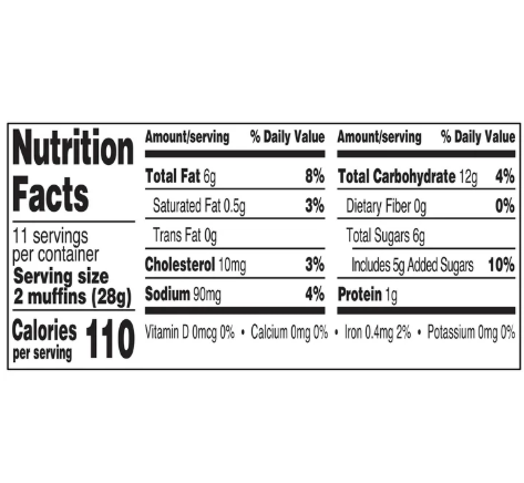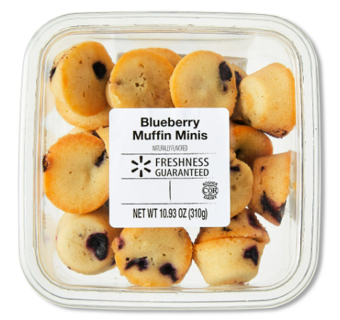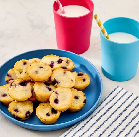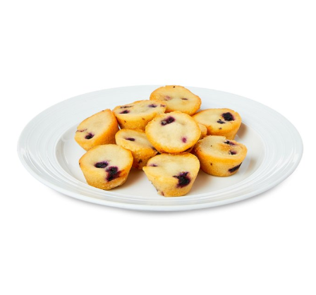 Mini muffins made with real blueberry flavor and a soft, fluffy texture