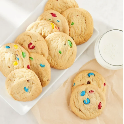 Freshness Guaranteed Candy Cookies are soft-baked cookies that are loaded with delicious M&M candies. These cookies are perfect for any event or occasion and they are carefully packaged to make them easy to take anywhere. Share with friends and colleagues at your next party. Candy cookies are easily the perfect partner for a cold, tall glass of milk or a scoop of your favorite ice cream. 10 Cookies per container. 14oz sell unit. Treat yourself to Freshness Guaranteed Candy Cookies. Baked. Ready to Eat.