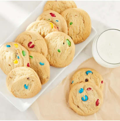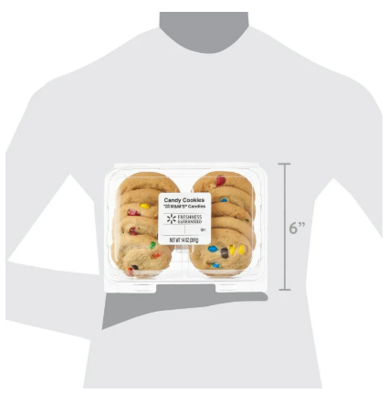 Freshness Guaranteed Candy Cookies are soft-baked cookies that are loaded with delicious M&M candies. These cookies are perfect for any event or occasion and they are carefully packaged to make them easy to take anywhere. Share with friends and colleagues at your next party. Candy cookies are easily the perfect partner for a cold, tall glass of milk or a scoop of your favorite ice cream. 10 Cookies per container. 14oz sell unit. Treat yourself to Freshness Guaranteed Candy Cookies. Baked. Ready to Eat.