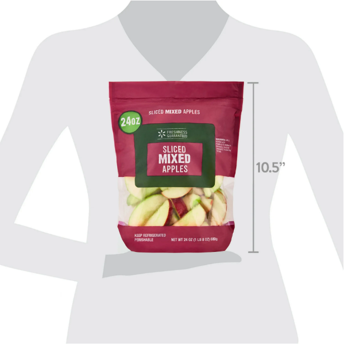 Simple Ingredients: Contains apples, ascorbic acid (to maintain color), and calcium carbonate. Low-Calorie Snack: Approximately 80 calories per 140g serving, making it a healthy option for those monitoring their calorie intake. Quality Assurance: Offered under Walmart's Freshness Guaranteed brand, ensuring quality and freshness.