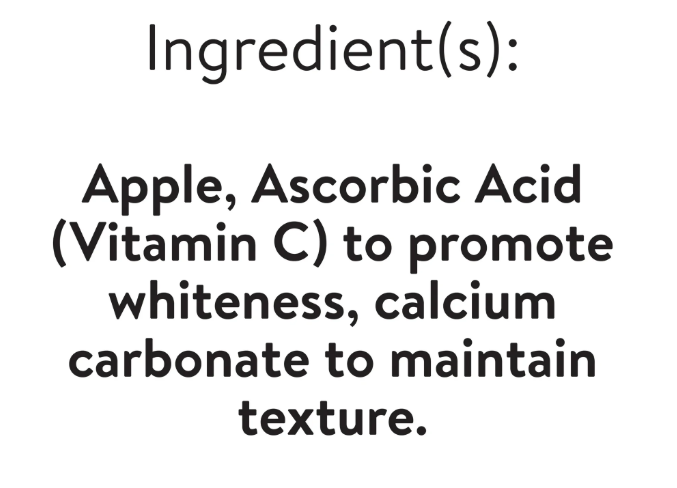 APPLES, ASCORBIC ACID PRESERVATIVE), CALCIUM CARBONATE.