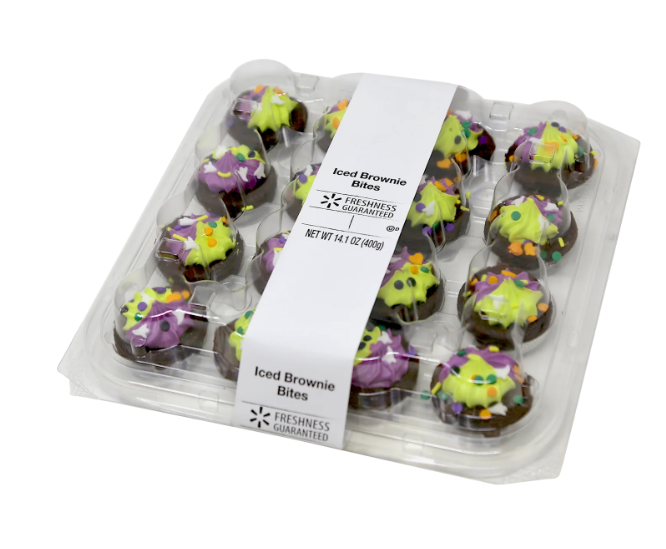 Rush to Walmart this Halloween season for the Freshness Guaranteed Halloween Iced Mini Brownies! These chewy and moist brownies are topped with sweet vanilla icing and festive Halloween sprinkles, creating the perfect balance of smooth and crunchy in every bite. Enjoy them on their own, or pair them with ice cream, milk, or coffee for an extra treat. Packaged in a resealable plastic tray, these shelf-stable brownies stay fresh even after opening. Fun for kids and loved by all ages, they make a great addition to school or work parties, holiday dessert boards, or family gatherings. Pick up a package of Freshness Guaranteed Halloween Iced Mini Brownies today and make your celebrations extra sweet.