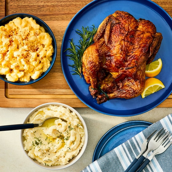 Freshness Guaranteed Hot and Ready-to-Eat Traditional Rotisserie Chicken Meal Bundle with Large Macaroni and Cheese and Large Mashed Potatoes