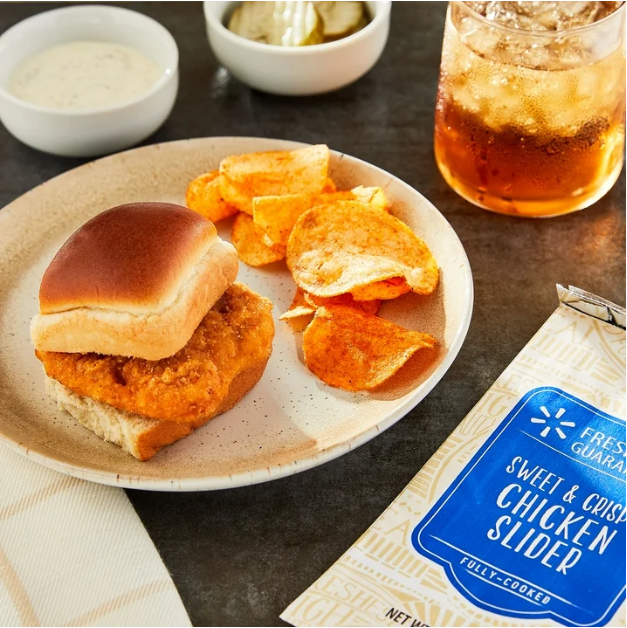This Freshness Guaranteed Hot and Ready-to-Eat Sweet and Crispy Chicken Slider is a delicious snack that anyone will enjoy. Cooked fresh in store, this savory sandwich has a mouthwatering chicken patty on a waffle-inspired bun. Make it a complete meal and add your favorite chips and some fresh fruit. Each "add to cart" adds one sandwich to your order. Pick up a Freshness Guaranteed Hot and Ready-to-Eat Sweet and Crispy Chicken Slider today.