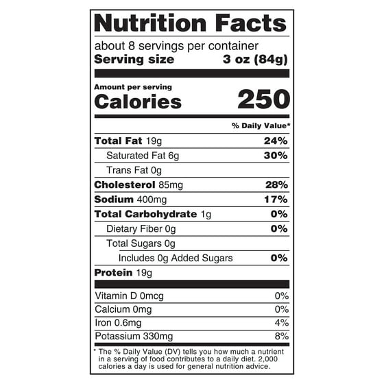 - 19g of protein per 3oz serving