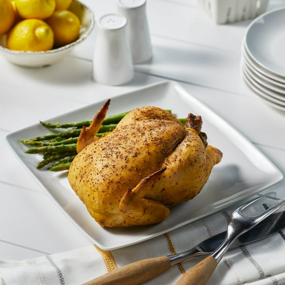 - Fresh chicken deliciously seasoned and rotisserie roasted for a bright lemon pepper flavor
