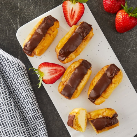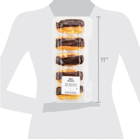 Treat yourself to the delicious Freshness Guaranteed Mini Eclairs from our Fresh Bakery. These mini eclairs are a wonderfully light pastry covered in a rich chocolaty icing and filled with decadent sweet creme. Each package offers five delicious eclairs, making it easy to enjoy as a quick treat here and there or to share with friends and family. Make your eclair experience extra special and pair it up with a cold glass of milk for an after-dinner delight or with a hot cup of coffee for an indulgent way to start your day. These decadent eclairs come in an easy to open resealable clam shell container for your convenience and to help maintain freshness between snacking sessions. This eclairs are shelf-stable.