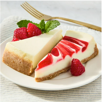 Freshness Guaranteed New York Style & Strawberry Swirl Cheesecake makes it easy to indulge your cravings or to please the different tastes of your friends, family, or co-workers. If you can't decide whether to get New York Style or Strawberry Swirl, then this pairing is the perfect solution. Enjoy this delectable treat while you're getting caught up on your favorite television show, after a fulfilling day at work, or as a late-night snack. It's also the ideal dessert for sharing with someone on special occasions or on a cozy weekday evening. Satisfy your sweet tooth cravings with Freshness Guaranteed New York Style and Strawberry Swirl Cheesecake.