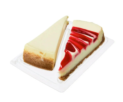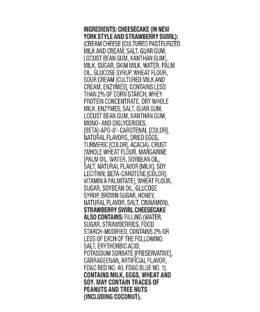 - Contains a single slice of both New York style and strawberry swirl cheesecake