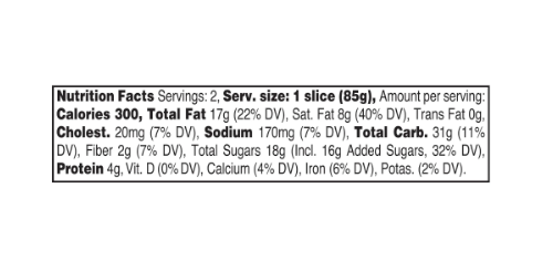 | Total Sugars: | 18g (Incl. 16g Added Sugars, 32% DV) |