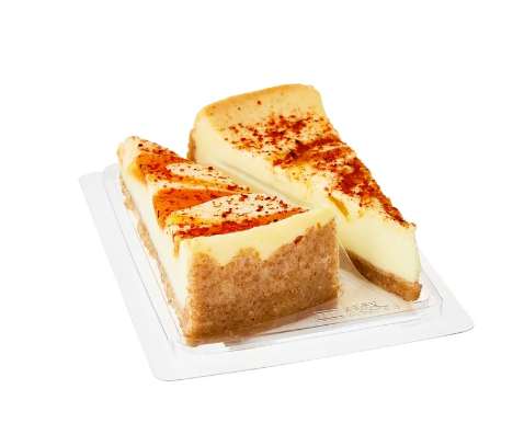 CHEESECAKE (IN ALL FLAVOR VARIETIES): (CREAM CHEESE [CULTURED PASTEURIZED MILK AND CREAM, SALT, GUAR GUM, LOCUST BEAN GUM, XANTHAN GUM], MILK, SUGAR, SKIM MILK, WATER, PALM OIL, GLUCOSE SYRUP, WHEAT FLOUR, SOUR CREAM [CULTURED MILK AND CREAM, ENZYMES], CONTAINS LESS THAN 2% OF CORN STARCH, WHEY PROTEIN CONCENTRATE, DRY WHOLE MILK, ENZYMES, SALT, GUAR GUM, LOCUST BEAN GUM, XANTHAN GUM, MONO-AND DIGLYCERIDES, [BETA]-APO-8'-CAROTENAL (COLOR), NATURAL FLAVORS, DRIED EGGS, TURMERIC [COLOR], ACACIA), CRUST (WHOLE WHEAT FLOUR, MARGARINE (PALM OIL, WATER, SOYBEAN OIL, SALT, NATURAL FLAVOR (MILK), SOY LECITHIN, BETA-CAROTENE (COLOR), VITAMIN A PALMITATE), WHEAT FLOUR, SUGAR, SOYBEAN OIL, GLUCOSE SYRUP, BROWN SUGAR, HONEY, NATURAL FLAVOR, SALT, CINNAMON), PINEAPPLE WITH TAJÍN CHEESECAKE ALSO CONTAINS: FILLING (WATER, PINEAPPLE, SUGAR, FOOD STARCH-MODIFIED, CONTAINS 2% OR LESS OF TAJÍN SPICE [CHILI PEPPERS, SEA SALT, CITRIC ACID, DEHYDRATED LIME JUICE), LEMON JUICE POWDER (MALTODEXTRIN, LEMON JUICE SOLIDS, LEMON OIL, TOCOPHEROLS], CITRIC ACID, ERYTHORBIC ACID, POTASSIUM SORBATE (PRESERVATIVE), SALT, NATURAL AND ARTIFICIAL FLAVOR, FD&C YELLOW NO.5, FD&C YELLOW NO. 6), TAJIN TOPPING (CHILI PEPPERS, SEA SALT, CITRIC ACID, CONTAINS 0.5% OR LESS OF DEHYDRATED LIME JUICE), MANGO WITH TAJÍN CHEESECAKE ALSO CONTAINS: FILLING (WATER, SUGAR, MANGO PUREE, PASSION FRUIT JUICE, FOOD STARCH-MODIFIED, CONTAINS 2% OR LESS OF NATURAL AND ARTIFICIAL FLAVOR, GELLAN GUM BLEND [SUCROSE, SODIUM CITRATE, GELLAN GUM], POTASSIUM SORBATE [PRESERVATIVE], MALIC ACID, ERYTHORBIC ACID, SALT, FD&C YELLOW NO.5, FD&C YELLOW NO. 6), TAJÍN TOPPING (CHILI PEPPERS, SEA SALT, CITRIC ACID, CONTAINS 0.5% OR LESS OF DEHYDRATED LIME JUICE)..