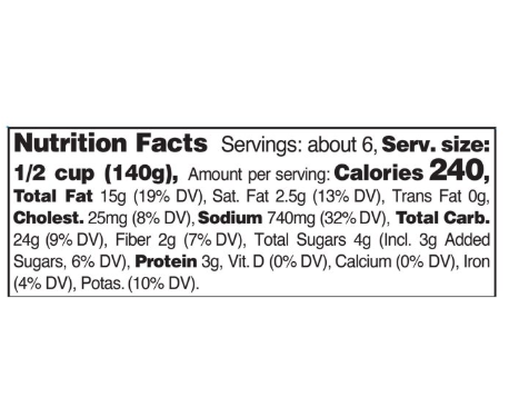The Freshness Guaranteed Premium Ready-To-Serve Redskin Potato Salad Family Tub (32 oz, 1 Count) brings the authentic expression of the classic American staple right to your table. This potato salad is perfect for the host who can?t wait to delight their guests with the delicious flavors of great food. Potato salad is a staple of the classic outdoor picnic, barbeque, tailgate, or party. High quality ingredients and time-tested recipes that are ideal for sharing, no matter the occasion ? that?s what we provide when you bring this potato salad to your next event. Most importantly, you get an unforgettably flavorful dish that?s convenient and affordable. Our potatoes are diced to 5/8? of an inch with a semi firm texture, making every bite satisfying and smooth. Get ready to be the host that everyone loves when you share this potato salad with your family and friends!