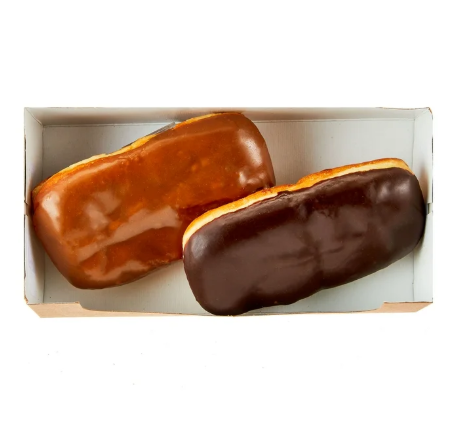 Enjoy the sweet taste of Freshness Guaranteed Iced Fluff Filled Bar Donuts. These delectable bar donuts are a great addition to any breakfast table. They're easy to grab on the go and enjoy with a fresh cup of coffee or a glass of cold milk. This box comes with two shelf-stable regular bar donuts filled with sweet fluff, perfect for a quick breakfast or snack. One bar is topped with chocolate icing, while the other is topped with maple icing. The donuts come in a re-closable box to help maintain freshness. Treat yourself to the delicious taste of Freshness Guaranteed Ice Fluff Filled Bar Donuts.