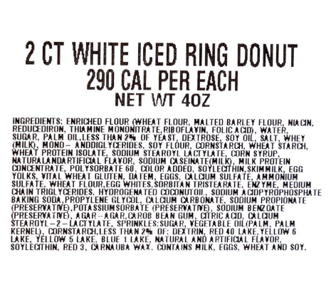 ENRICHED FLOUR (WHEAT FLOUR, MALTED BARLEY FLOUR, NIACIN, REDUCED IRON, THIAMINE MONONITRATE, RIBOFLAVIN, FOLIC ACID), WATER, PALM OIL, LESS THAN 2% OF: YEAST, DEXTROSE, SOY OIL, WHEY (MILK), SALT, SUGAR, MONO- AND DIGLYCERIDES, SOY FLOUR, WHEAT STARCH, WHEAT PROTEIN ISOLATE, SODIUM STEAROYL LACTYLATE, NATURAL & ARTIFICIAL FLAVOR, SODIUM CASEINATE (MILK), MILK PROTEIN CONCENTRATE, POLYSORBATE 60, COLOR ADDED, SKIM MILK, CORNSTARCH, EGG YOLKS, VITAL WHEAT GLUTEN, DATEM, AGAR-AGAR, EGGS, CALCIUM SULFATE, AMMONIUM SULFATE, WHEAT FLOUR, EGG WHITES, ASCORBIC ACID (PRESERVATIVE), CELLULOSE GUM, PECTIN, LOCUST BEAN GUM, GLYCERIN, INULIN, INVERTSUGAR, ENZYME, SOY LECITHIN, SODIUM ACID PYROPHOSPHATE, BAKING SODA, MALTODEXTRIN, CALCIUM STEAROLYL-2-LACTYLATE, POTASSIUM SORBATE (PRESERVATIVE), CITRIC ACID, XANTHAN GUM, TOCOPHEROLS (PRESERVATIVE).Warnings