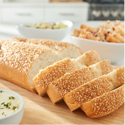 Freshness Guaranteed Sesame Seed Italian Loaf is a classically delicious bread that is baked fresh in store and topped with a robust blend of sesame seeds. This bread is perfect as a side or used as an ingredient in home cooked meals. Use it to make large, hand-crafted sandwiches piled high with all your favorite meats, veggies and condiments. Slice it up and use it as a base for pizza or simply toast and spread with your favorite jelly or jam. Use it to make garlic bread and serve with chicken alfredo and a side salad. Enjoy fresh from the bakery taste in the comfort of your home with Freshness Guaranteed Sesame Seed Italian Loaf.