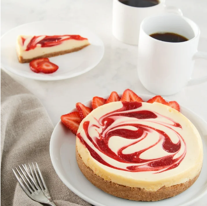 Freshness Guaranteed Strawberry Swirl Cheesecake is a masterpiece of incredibly rich and decadent cheesecake with the perfect amount of strawberry. The buttery, graham cracker crust will definitely melt in your mouth. Made from the highest quality ingredients, this strawberry swirl cheesecake will satisfy any sweet tooth. Cut a slice when you want to treat yourself to a delicious sweet snack or bring it to a dinner party. It's sure to be a showstopper amongst cheesecake lovers! Plus, the resealable container makes it easy to save and store for later. Dig in and satisfy your sweet tooth with Freshness Guaranteed Strawberry Swirl Cheesecake.