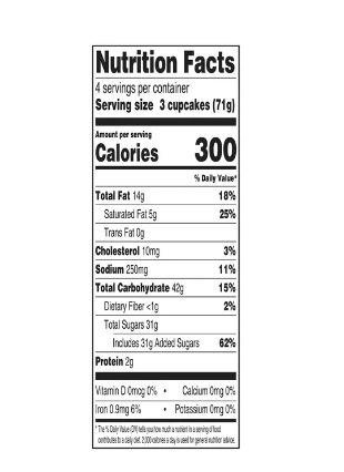 - Serving size 3 cupcakes (71g)