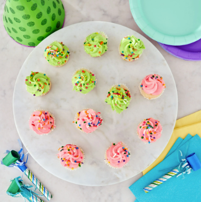 Treat yourself to a bite of Freshness Guaranteed Vanilla Cupcakes. These fun-filled cupcakes contain moist vanilla cupcakes that are frosted with pink and green buttercream icing. They're even topped with multicolor sprinkles for a fun, celebratory touch. These bite-sized cupcakes are great to serve to guests at your next party or get-together, bring to a friend's house, share with co-workers, or a sweet treat to indulge in on any day. The cupcakes come in a reclosable container for convenience and to help maintain freshness in-between snacking. The container comes with 12 bite-sized cupcakes so there is plenty to share. Satisfy your sweet tooth with Freshness Guaranteed Vanilla Cupcakes. Freshness Guaranteed provides you and your family with high quality fresh food that saves you time and money, many of which are cooked fresh or prepared in stores. Convenient solutions with value-added in every Spark Fresh item.