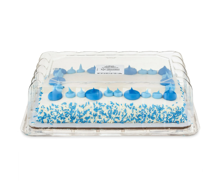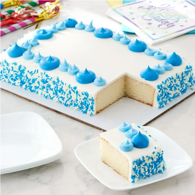 Freshness Guaranteed 1/4 Sheet White Cake with Buttercream Frosting is a single-layer white cake that is perfect for any celebration. This quarter-sheet cake serves 18 so you will have plenty to share with everyone at your birthday party or event. This moist sheet cake is covered in rich, smooth buttercream icing. You can personalize this cake for your event. Add candles or a special cake topper for birthdays, baby showers, bridal showers, or any occasion you want a cake. Whether you are celebrating with coworkers in the office or having a neighborhood get-together in your backyard, everyone will enjoy this delicious cake. Treat yourself with the Freshness Guaranteed 1/4 Sheet White Cake with Buttercream Frosting. Freshness Guaranteed provides you and your family with high-quality fresh food that saves you time and money, many of which are cooked fresh or prepared in stores. Convenient solutions with value-added in every Freshness Guaranteed item. Refrigerated. 55 ounces. Kosher. Fresh bakery treats, made simple —EBT/SNAP accepted!