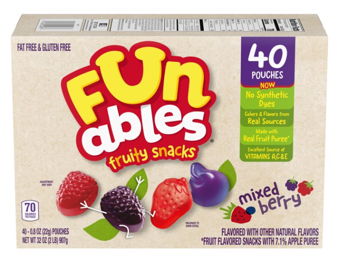Funables Fruity Snacks, Mixed Berry Flavored Snacks, 0.8 Ounce Pouches, 40 Count