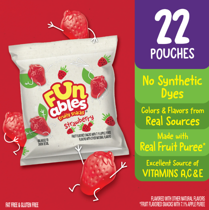 Funables Fruity Snacks, Strawberry Fruit Flavored Snacks, 0.8 Ounce Pouches (22 Count)