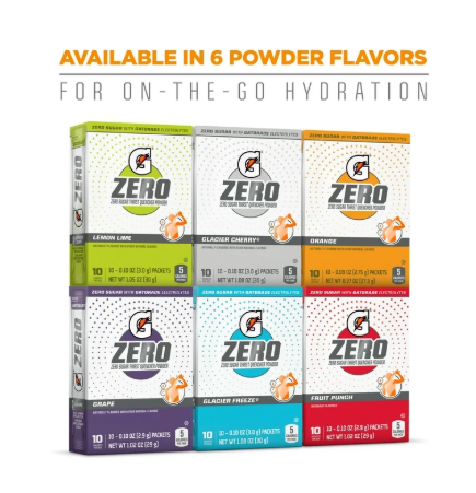Includes 1 box, each with 10 Packets inside of Gatorade G Zero Sports Drink, Glacier Freeze Flavor
