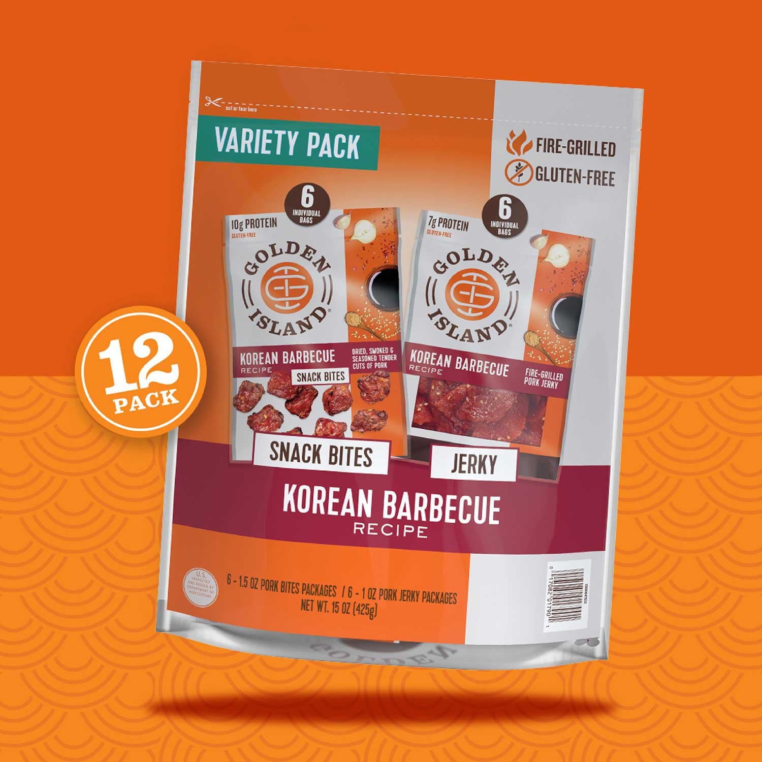 Golden Island Korean Barbecue Pork Jerky and Snack Bites, 1.50 oz., 12 pk.