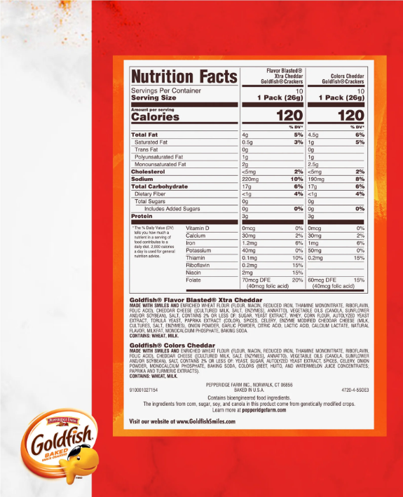 - VARIETY PACK INCLUDES: 10 single-serving packs of Goldfish Colors and 10 single-serve snack packs in Flavor Blasted Xtra Cheddar flavor (1 ounce each).