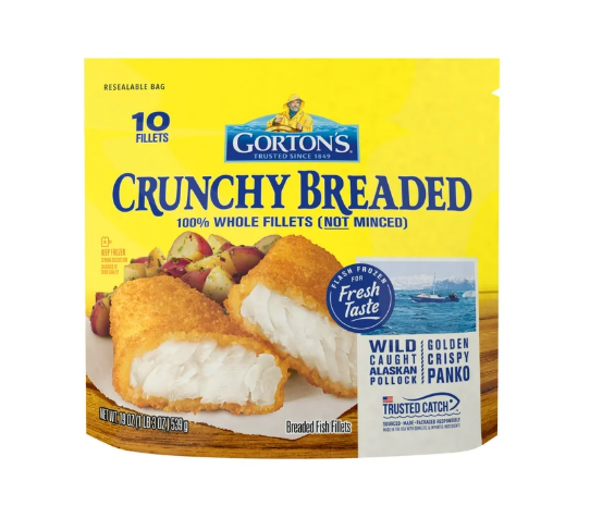 Gorton’s Crunchy Breaded Fish 100% Whole Fish Fillets (Not Minced), Wild Caught Alaskan Pollock with Crunchy Panko Breadcrumbs, Frozen, 10 Count, 19 Ounce Resealable Bag