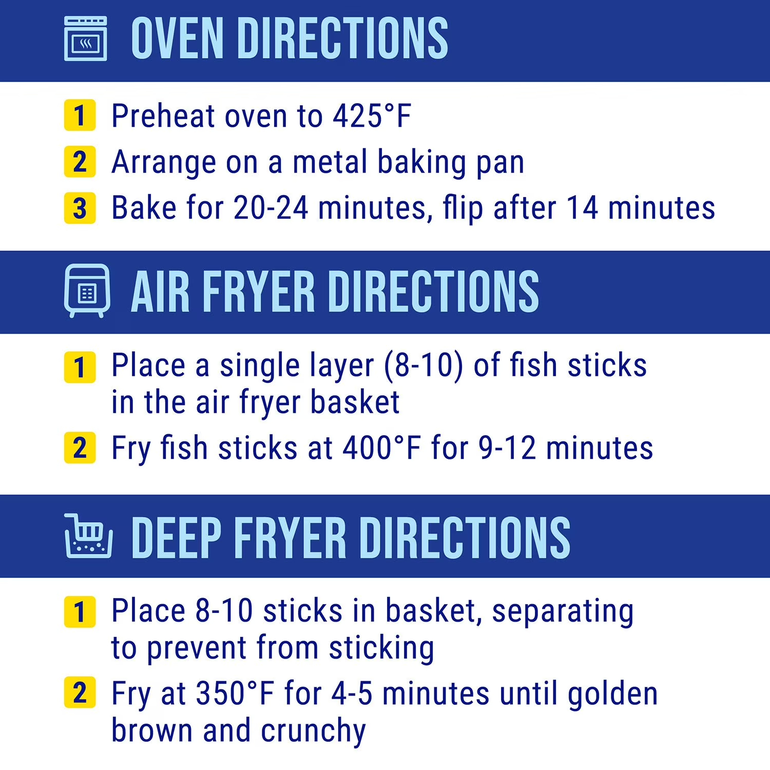 2. Fry fish sticks at 400°F for 9-12 minutes.*