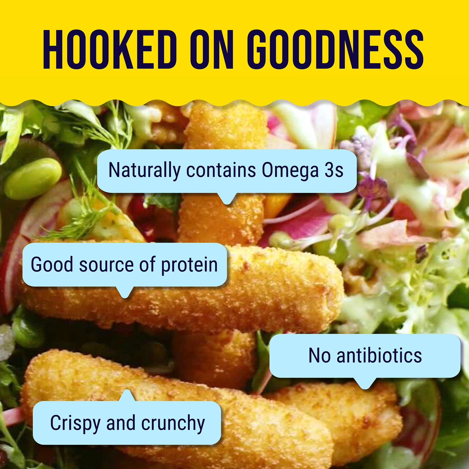 Bring home a classic taste of seafood with our family favorite, Super Crunchy Fish Sticks. Made from wild-caught Alaskan Pollock, our sticks are ideal for serving up a fresh-tasting, convenient meal, snack, or appetizer with 8g of protein per serving. To lock in our fish’s full nutrition, we ensure this product is flash-frozen at the peak of freshness. These fish sticks are coated with panko breadcrumbs made from daily baked bread for a satisfying crunch. These fish sticks are always prepared with no artificial colors or flavors, hydrogenated oils, or antibiotics. Plus, our fish is a natural source of natural Omega-3s and protein.