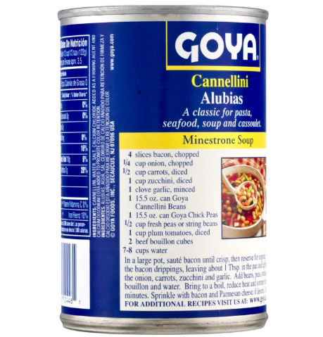 GOYA Cannellini 15.5 Oz. GOYA® Cannellini are delicious and versatile. They’re also a good source of fiber and fat free. Use them to make soups, stews and even tasty salads.