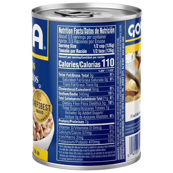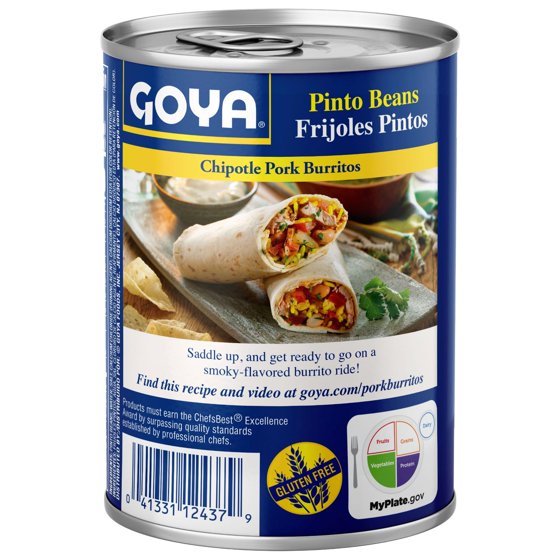 Pinto Beans, Water, Salt, Calcium Chloride added as a firming agent and Calcium Disodium EDTA added to promote color retention.