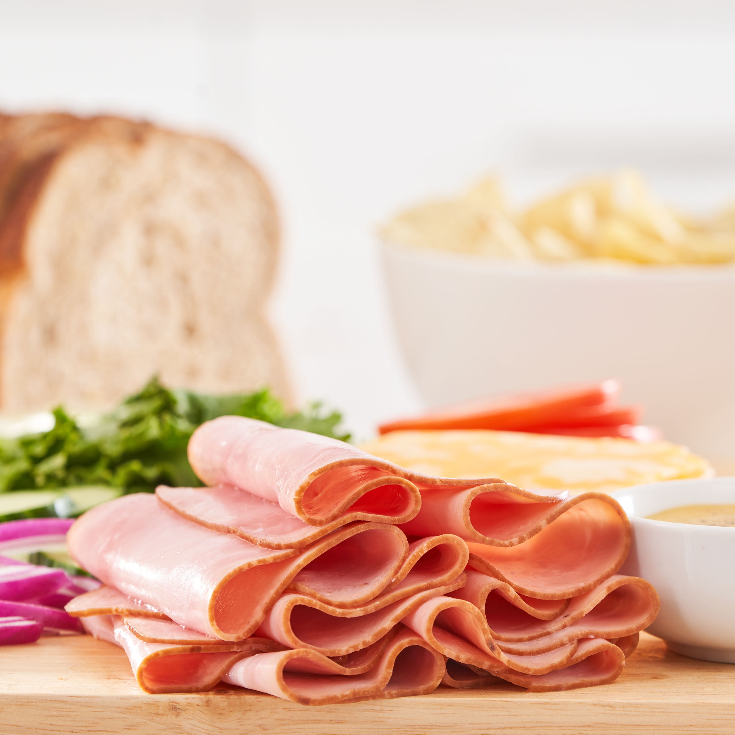 Great Value Black Forest Ham is made with fully cooked ham that has no artificial flavors or colors. This deli-style ham is perfect for school sandwiches with its great taste everyone will enjoy. Use it to make Black Forest ham wraps filled with lettuce, tomato, cucumber, shredded cheese, and ranch dressing, and serve with a side of chips for the perfect lunch. At just 30 calories per serving with one gram of fat and five grams of protein, you can be sure you're serving your family a healthy choice. Each package contains 16 servings and comes in a zip-pak to ensure your deli meat stays fresh after every use. Enjoy the fresh-from-the-deli taste with Great Value Black Forest Ham.