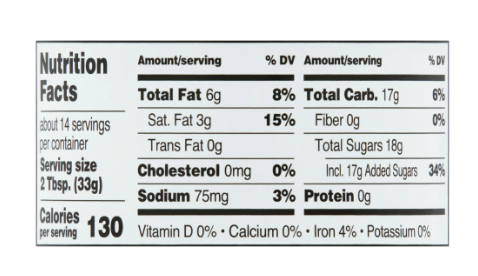 Sugar, Palm Oil, Water, Corn Syrup, Cocoa processed with Alkali, Corn Starch, Canola Oil, Contains 2% or less of: Salt, Mono- and Diglycerides, Natural and Artificial Flavor, Maltodextrin, Modified Corn Starch, Polysorbate 60, Soy Lecithin, Preservatives (Potassium Sorbate and Citric Acid), Xanthan Gum, Antioxidants (Chamomile and Rosemary Extracts, Ascorbyl Palmitate and Tocopherols), Caramel Color
