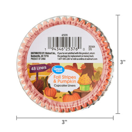 Add autumn warmth to your baking with Great Value Classic Orange Harvest Cupcake Liners. This 48‑count pack features rich orange tones—perfect for Thanksgiving and seasonal treats.