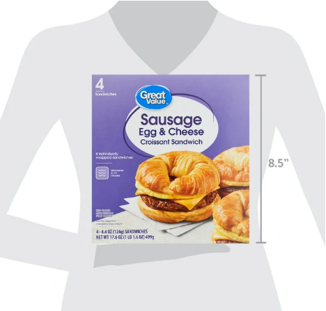 - Great Value Croissant Sandwiches Sausage Egg and Cheese, 4.4 oz, 4 Count (Frozen)