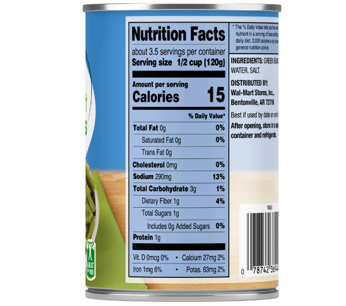 Eating your veggies just got easier with Great Value Cut Green Beans. Whether you want to make a vegetable soup, vegetable casserole, or your very own homemade recipe, Great Value Cut Green Beans have you covered. With no added chemicals or sugars, Great Value Cut Green Beans are picked and packed in the same day, ensuring farm-fresh flavors perfect for delicious, easy, and quick dinner ideas. Great Value Cut Green Beans are fast and easy to prepare. All you have to do is warm in a saucepan on the stove or heat in a microwave-safe dish in the microwave.