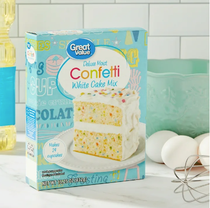 Great Value Deluxe Moist Confetti White Cake Mix offers you a delectable cake that is sure to put a smile on your face. This cake mix creates the most delicious white cake sprinkled with colorful confetti bits. These rainbow-colored confetti bits in the white cake make it an absolute favorite with children. It can be used to create layered cakes or cupcakes with quick and easy recipes. With Great Value Deluxe Moist Confetti White Cake mix, baking a cake is so easy and convenient that you don't have to wait for a special occasion. Make everyday moments more fun and memorable with Great Value Deluxe Moist Confetti White Cake Mix.