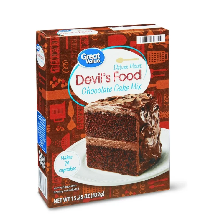 Great Value Deluxe Moist Devil's Food Chocolate Cake Mix offers you a delectable cake that is sure to put a smile on your face. This cake mix creates the most delicious and moist cake. A plain and simple chocolate cake is a classic favorite with children and adults alike. A rich and moist cake is a good base to build your sheet cakes for special occasions such as birthdays, anniversaries and more. You can use this mix to create layered cakes or even cupcakes with quick and easy recipes. With Great Value Deluxe Moist Devil's Food Chocolate Cake mix, baking a cake is so easy and convenient that you don't have to wait for a special occasion. Make everyday moments more fun and memorable with Great Value Deluxe Moist Devil's Food Chocolate Cake Mix.