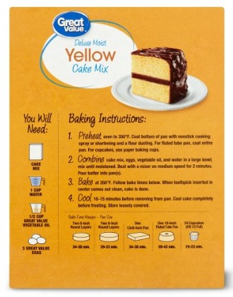 Great Value Deluxe Moist Yellow Cake Mix offers you a delectable cake that is sure to put a smile on your face. This cake mix creates the most delicious and moist cake. A plain and simple yellow cake is a classic favorite with children and adults alike. A rich and moist cake is a good base to build your sheet cakes for special occasions such as birthdays, anniversaries and more. You can use this mix to create layered cakes or even cupcakes with quick and easy recipes. With Great Value Deluxe Moist Yellow Cake Mix, baking a cake is so easy and convenient that you don't have to wait for a special occasion. Make everyday moments more fun and memorable with Great Value Deluxe Moist Yellow Cake Mix.