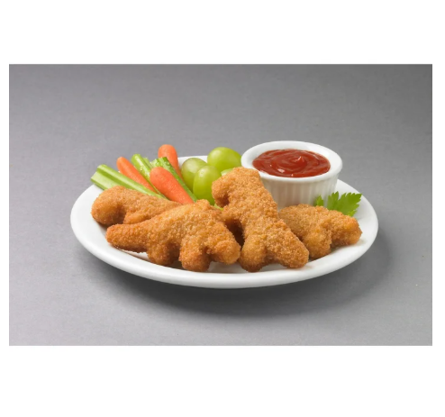 Chicken Breast With Rib Meat, Water, Wheat Flour, Textured Soy Protein Concentrate, Contains 2% Or Less Of: Caramelized Sugar, Dried Garlic, Dried Onion, Extractives Of Paprika (Color), Food Starch, Maltodextrin, Salt, Sodium Phosphates, Spices, Sugar, Sunflower Oil, Yeast, Yeast Extract, Yellow Corn Flour. Breading Set In Vegetable Oil.