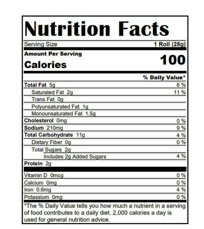 Serving Size: | 1 Roll (28g) |