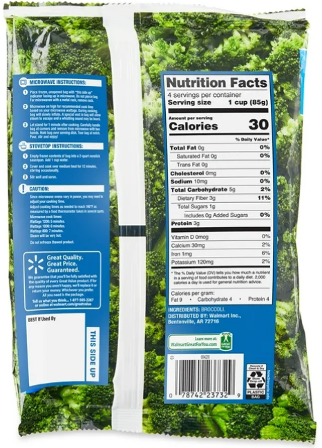 Great Value Frozen Broccoli Florets, 12 oz Steamable Bag