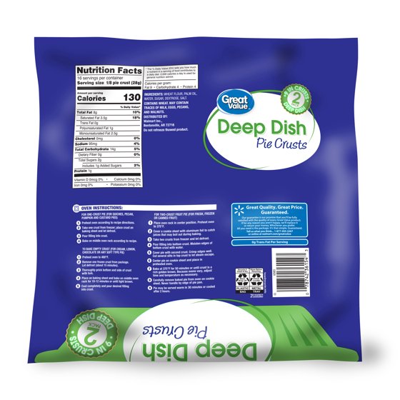 Great Value Frozen Deep Dish Pie Crusts, Two 9-inch Pie Crust & Pans, 16oz