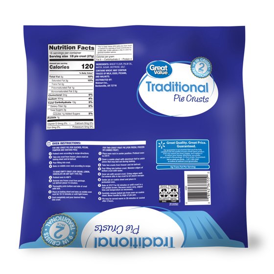 Great Value Frozen Traditional Pie Crusts, Two 9-inch Pie Crust & Pans,15oz