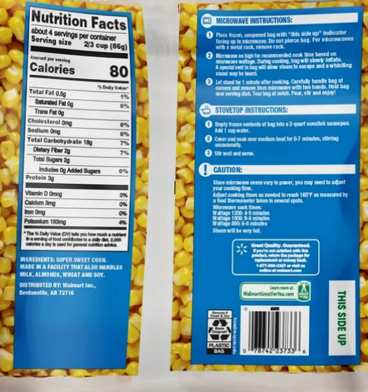 - Great Value Frozen Whole Kernel Corn, 12 oz Steamable Bag