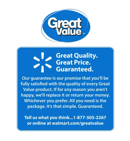 Great Value products provide families with affordable, high-quality grocery and household consumable options. With our wide range of product categories spanning grocery and household consumables, we offer you a variety of products for your family's needs. Our products are conveniently available online and in Walmart stores nationwide, allowing you to stock up and save money at the same time.