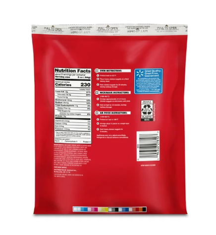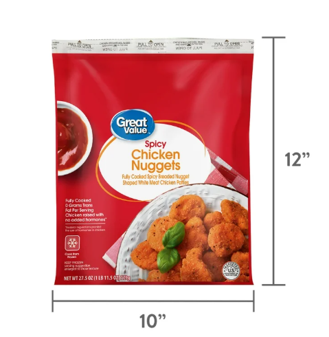 These Great Value Fully Cooked Spicy Chicken Nuggets are tantalizingly crafted with premium chicken, seasoned to perfection with a bold blend of spices that pack just the right amount of heat. Whether you're looking for a quick snack, a delicious appetizer, or a versatile ingredient for your favorite recipes, our spicy chicken nuggets deliver unbeatable flavor and convenience straight to your table. Discover the perfect balance of spice and savory goodness in every bite of our Great Value Fully Cooked Spicy Chicken Nuggets, making every meal a flavorful delight.
